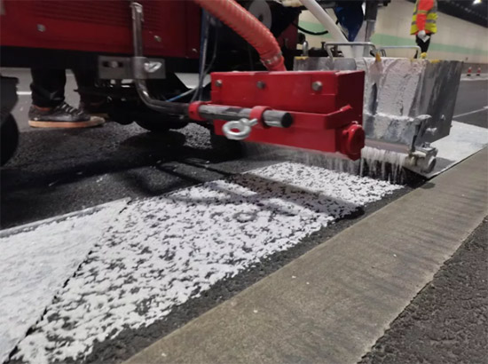 Two-component road markings are an environmentally friendly type of road marking. They have reflectivity, weather resistance, and abrasion resistance that are difficult for other types of road markings to match. Moreover, there is almost no dust abrasion throughout the entire life cycle. This effectively solves the drawbacks of traditional solvent-based road markings, such as solvent evaporation during construction, poor abrasion resistance during use, and poor reflectivity. It also solves the drawbacks of hot-melt road markings, such as fuel consumption during construction and a large amount of dust floating in the air during use.
